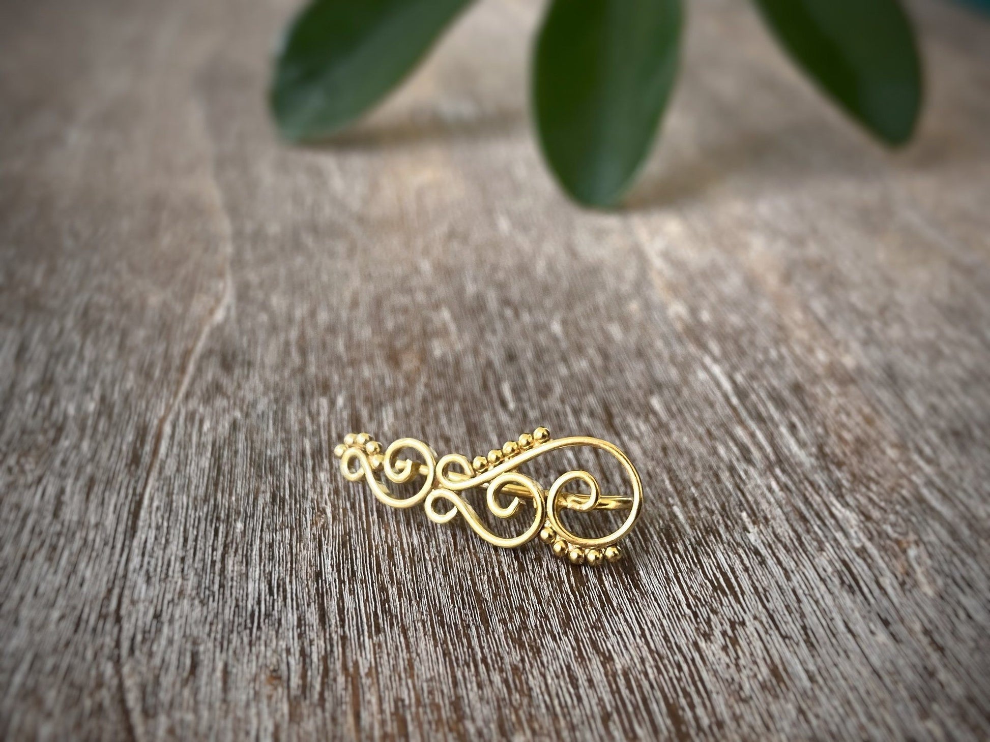 The piece of jewelry is made of 925 silver and then plated gold. 10 millimeters (1g Au per 1000g weight) of 18 ct gold were used. This is more durable than traditional gold plating. When gold plating, the base material is electroplated with gold - this usually works with an electrolyte bath in which, to put it simply, many gold particles adhere to the base material, sterling silver. However, with gold plating, the sterling silver is mechanically plated with gold. This means that not just individual gold particles, but a whole layer of gold is attached to the sterling silver. Gold plating usually lasts much longer than gold plating because the gold layer is much thicker.