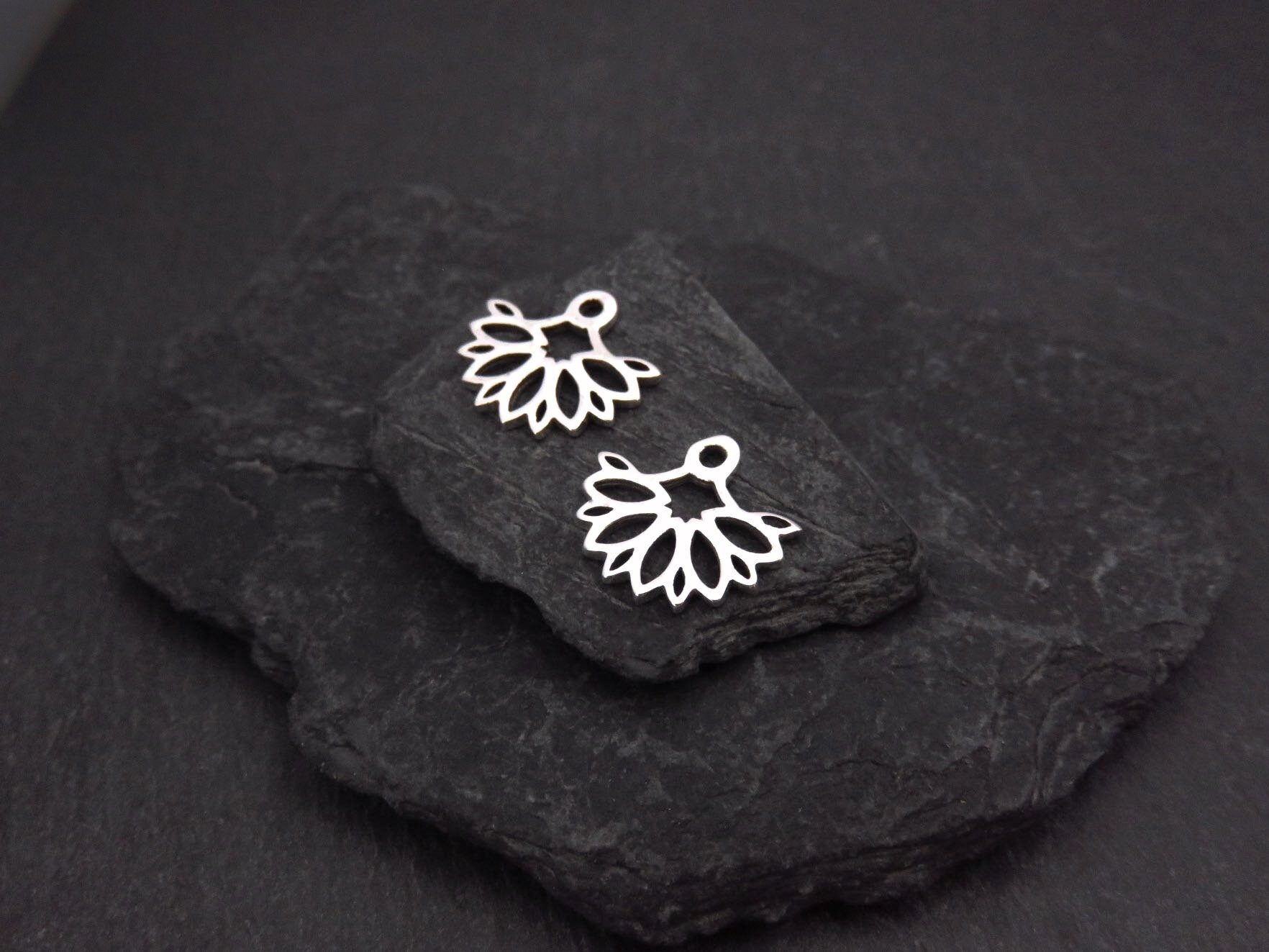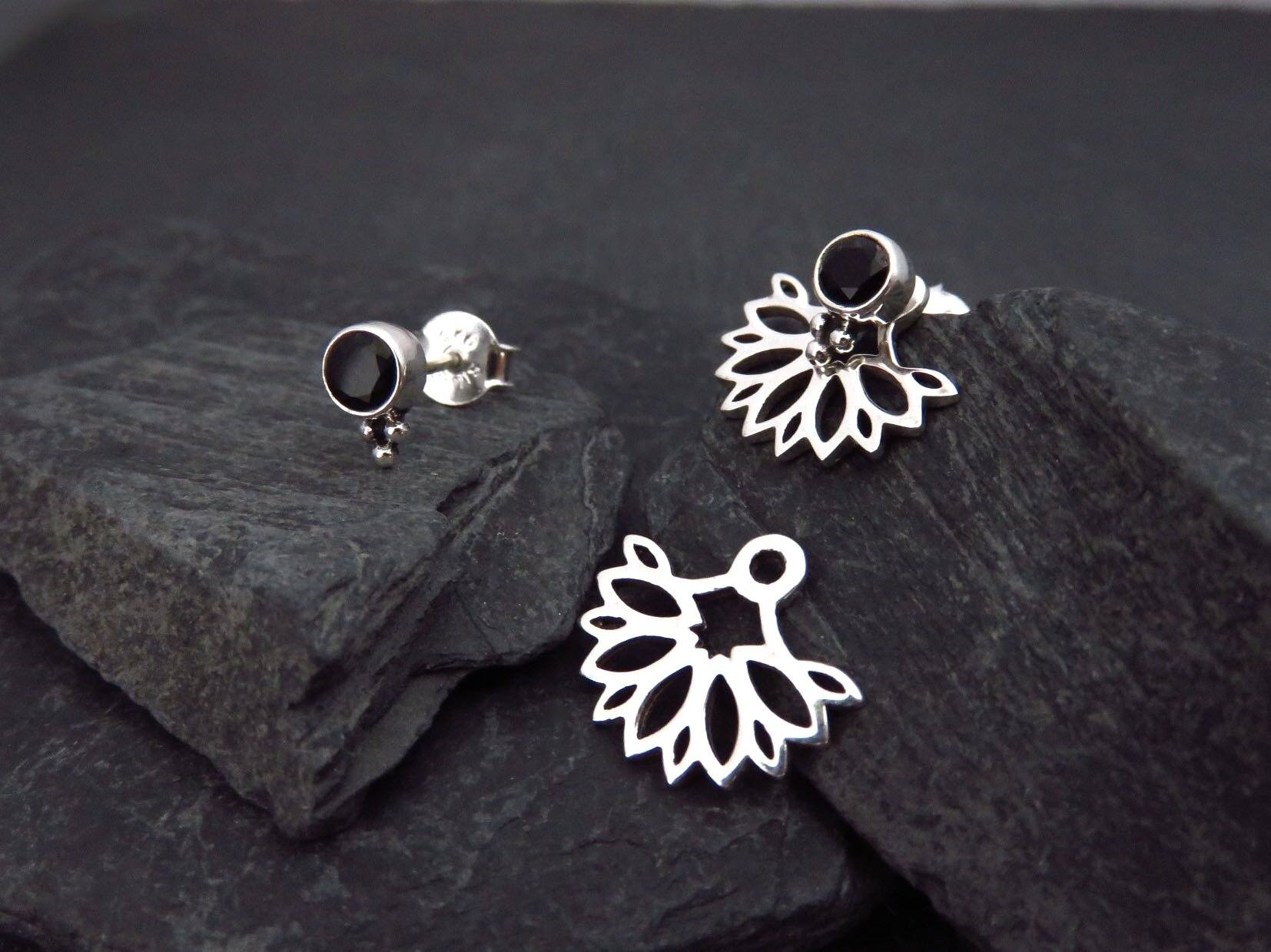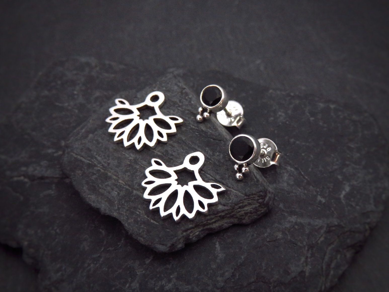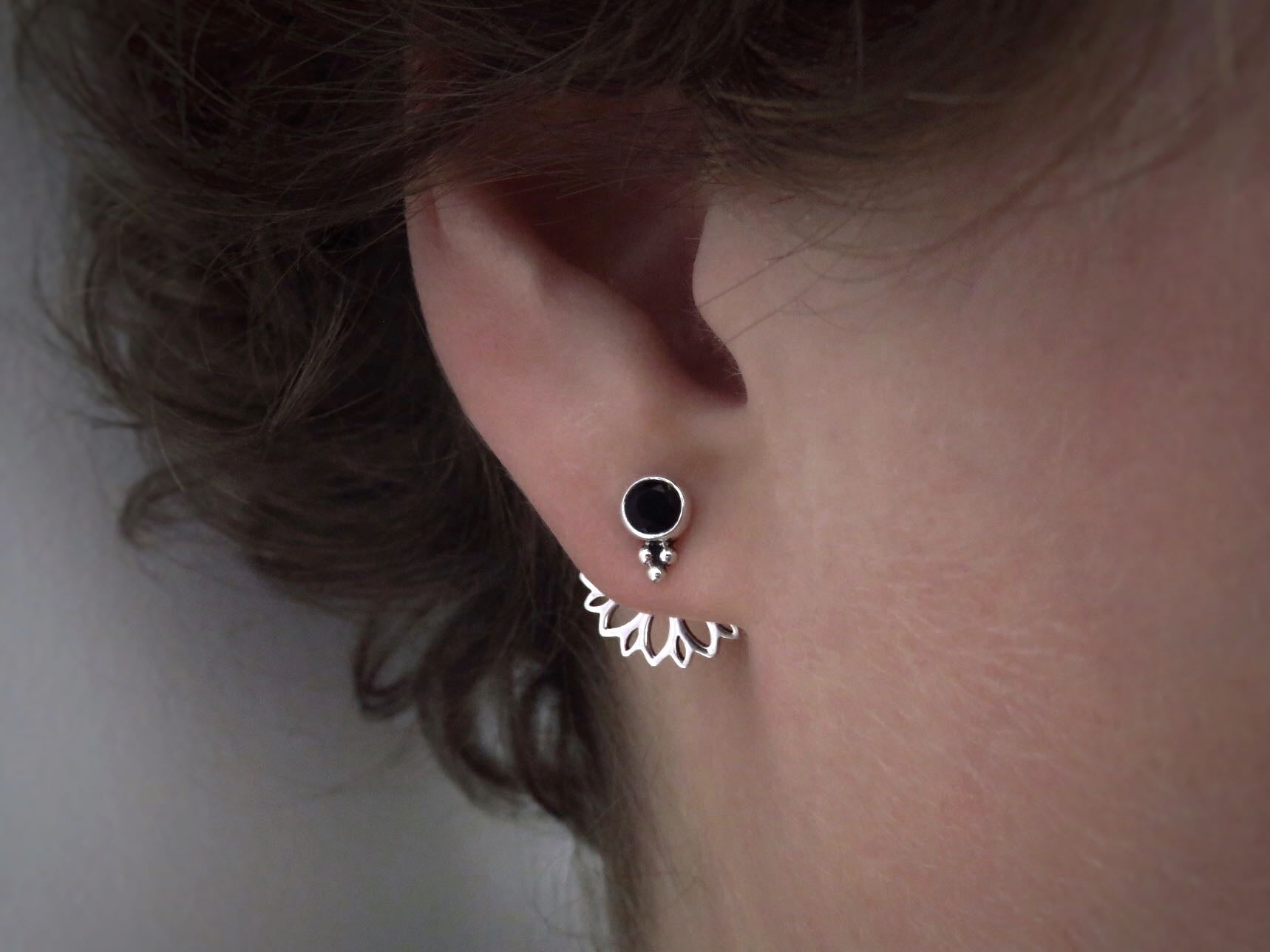 These stud earrings can be worn in various ways. One option is to just wear the small plug without an attachment. Then there is the option of using the attachment behind the ear as well as in front of it. The attachment can also be combined with other existing ear studs.
