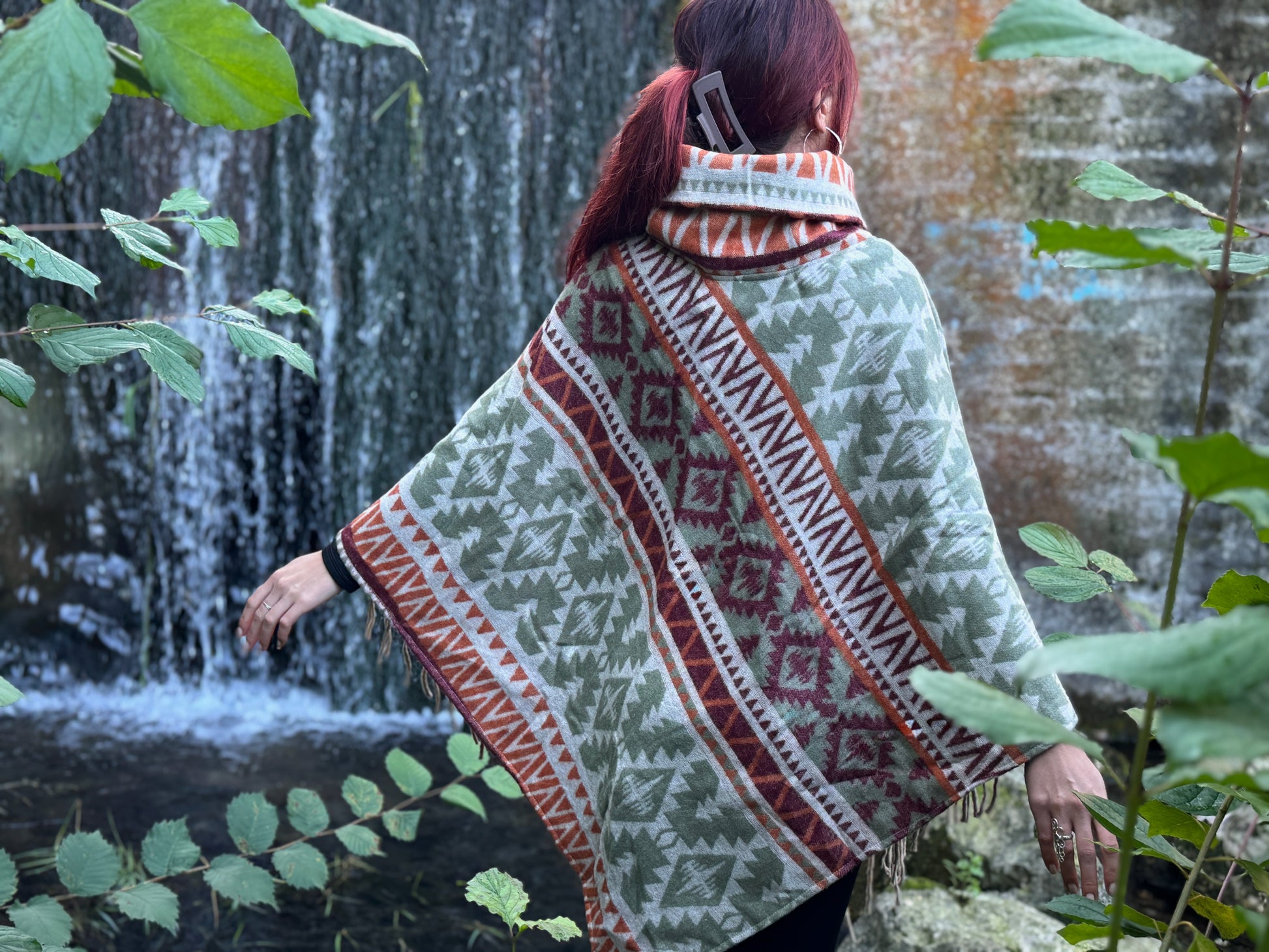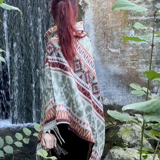 half-length, plain-colored knitted sweater with hood and thumbholes in rosé red