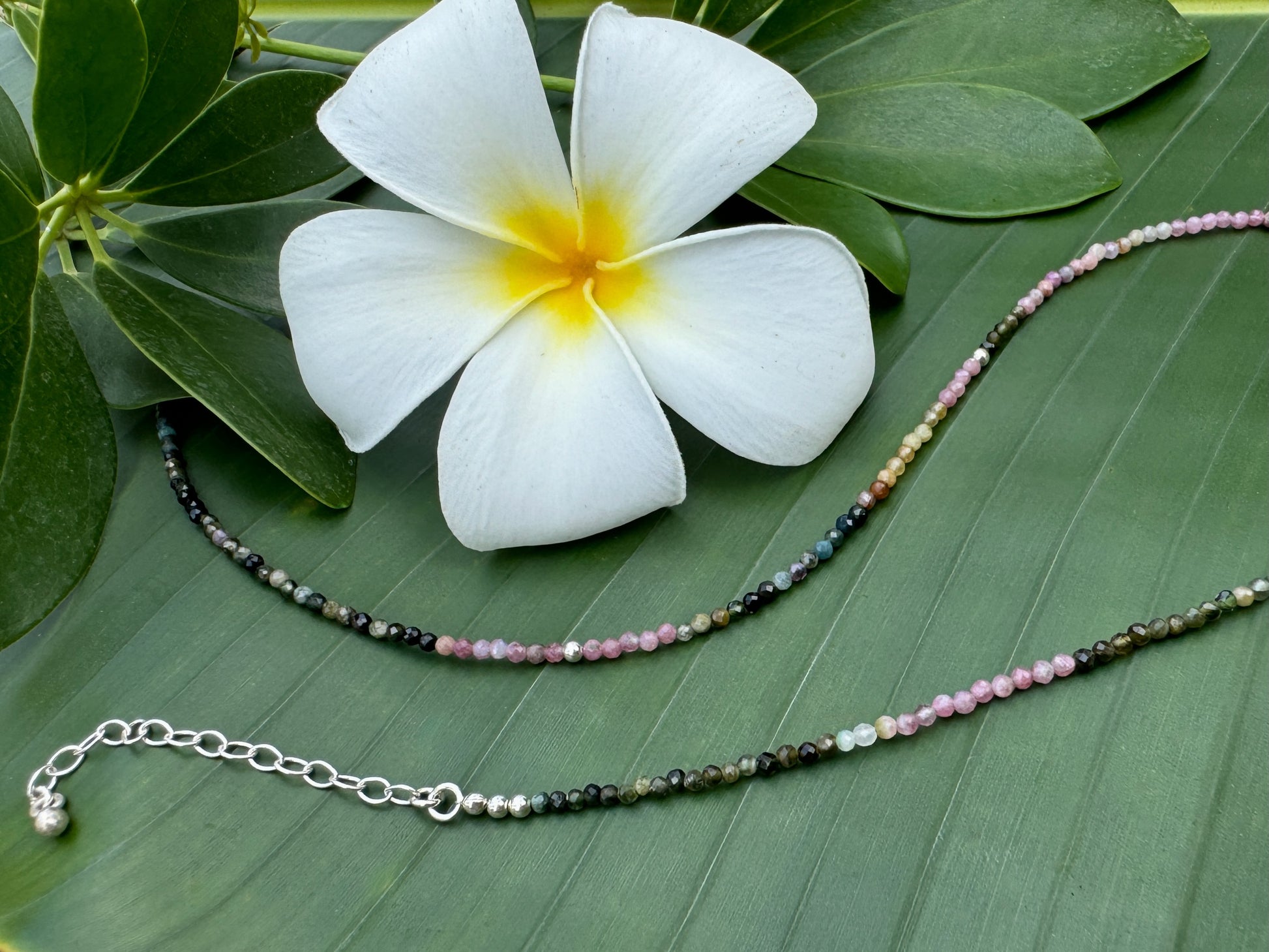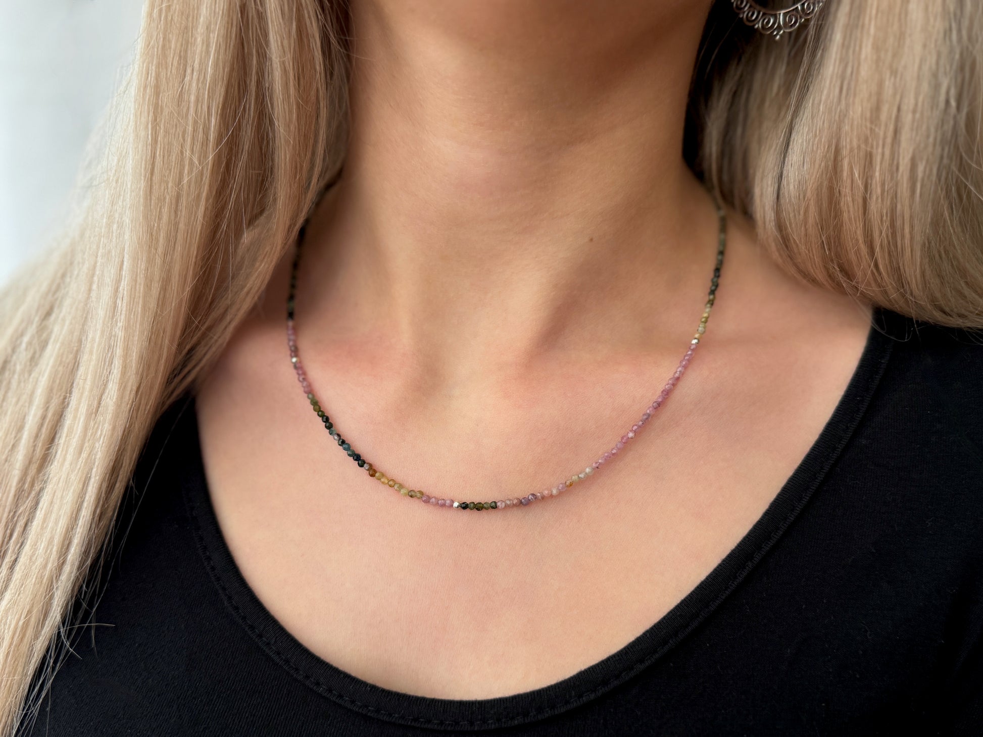 Kette mit kleinen facettierten Turmalin Steinen, 925er Silber, längenverstellbar