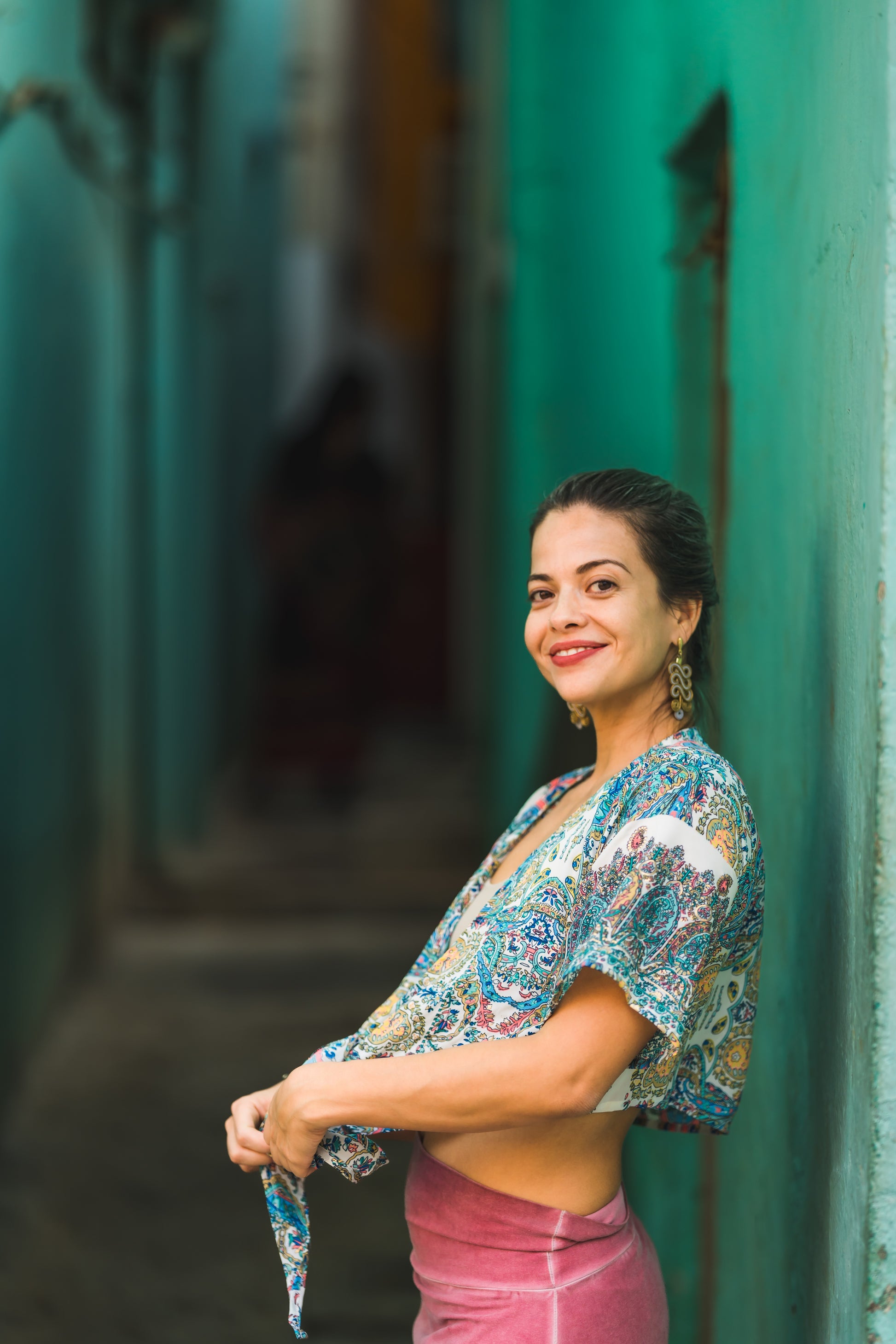 kurzer Kimono zum Binden, Bluse, Sommerbluse, Überwurf, weiß bunt gemustert