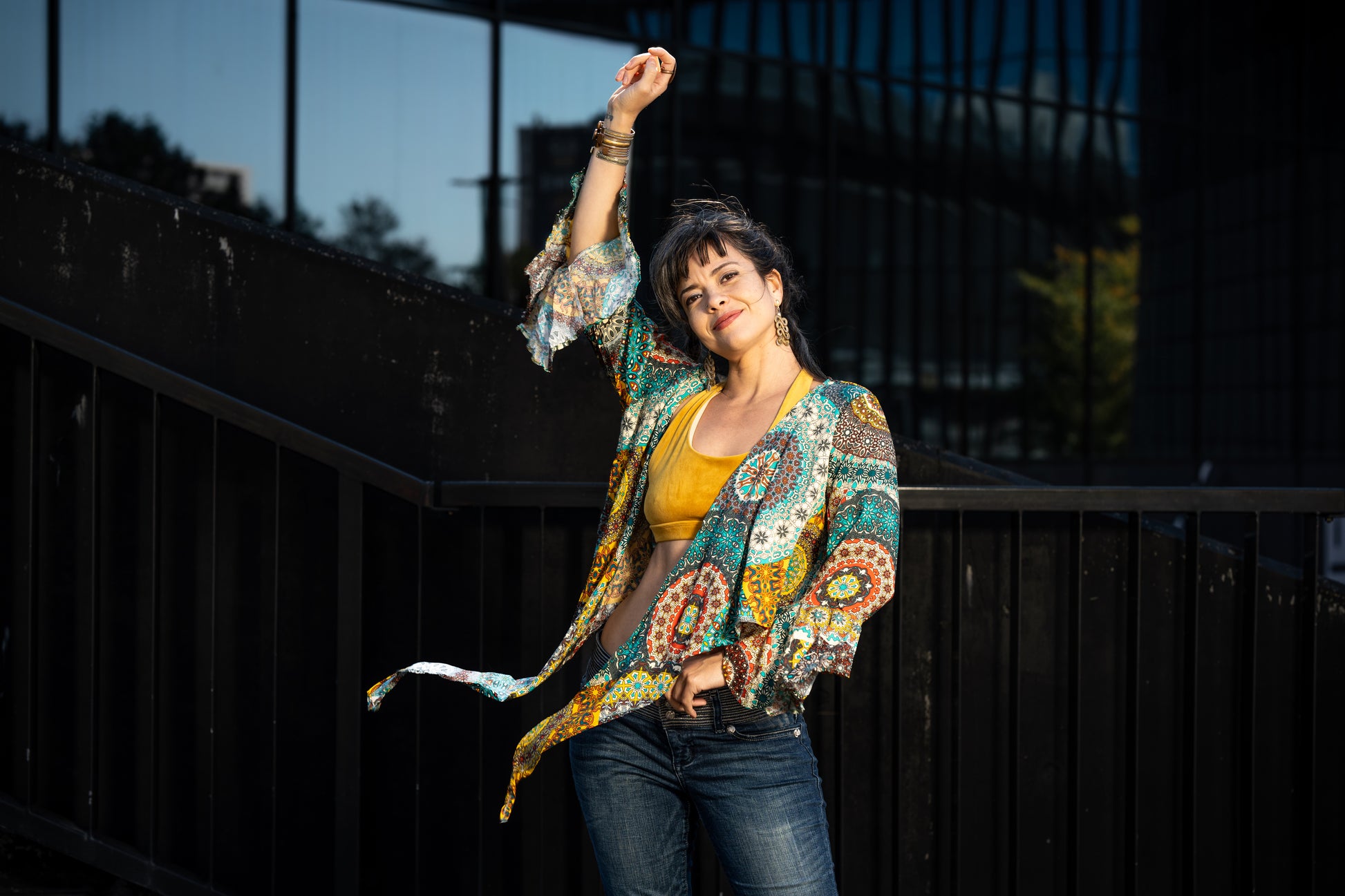 Der Kimono kann offen oder vorne zusammengebunden getragen werden.