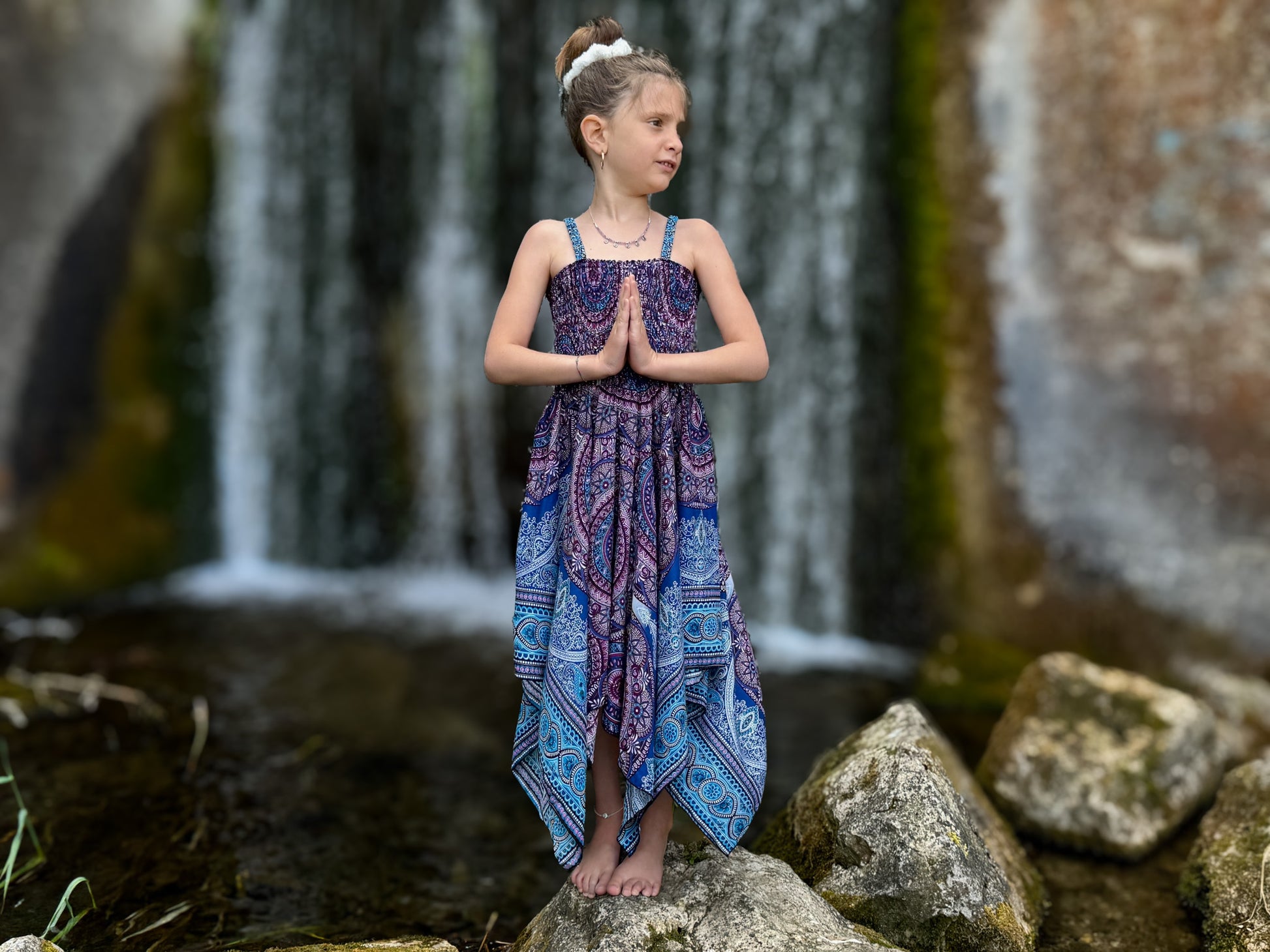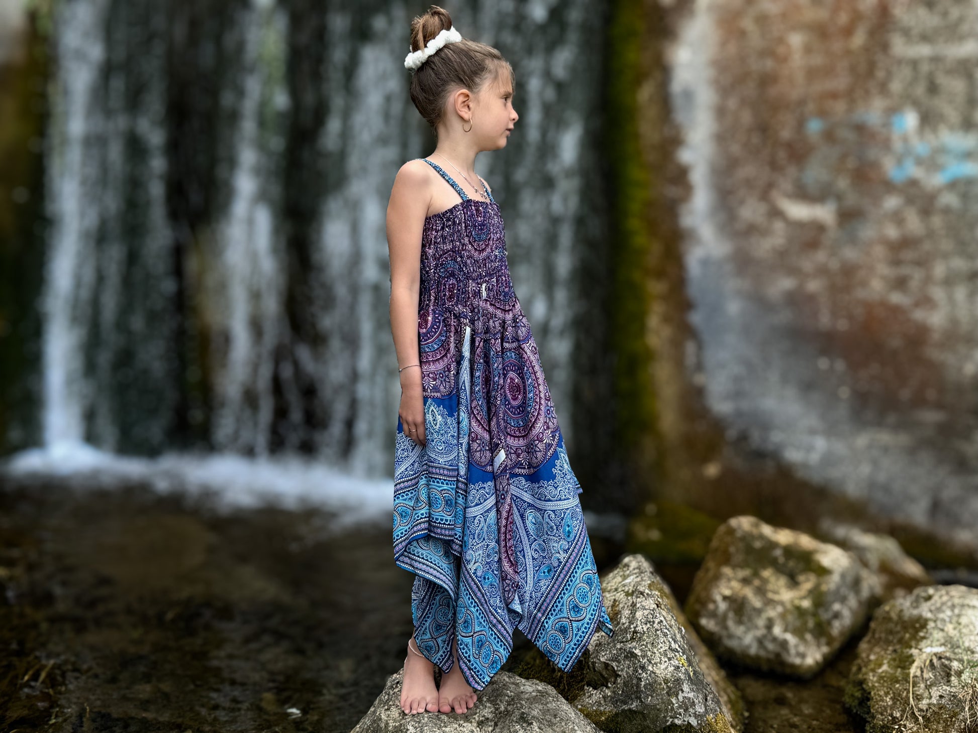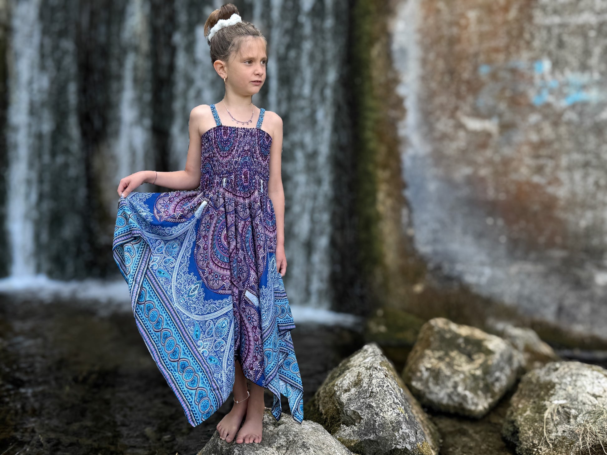 Ein farbenfrohes Boho-Kleid für kleine Abenteurerinnen – bequem, einzigartig und mitwachsend.