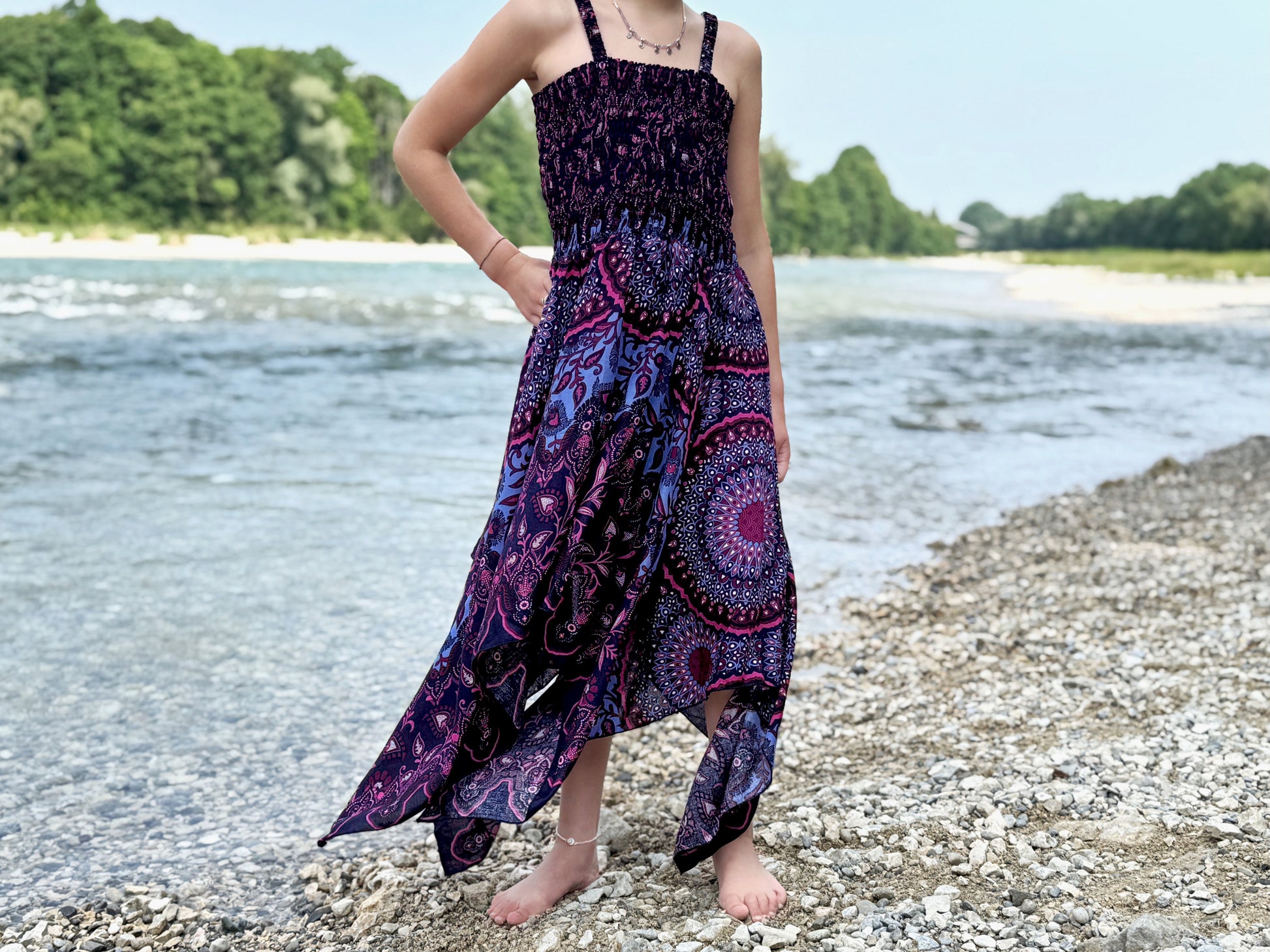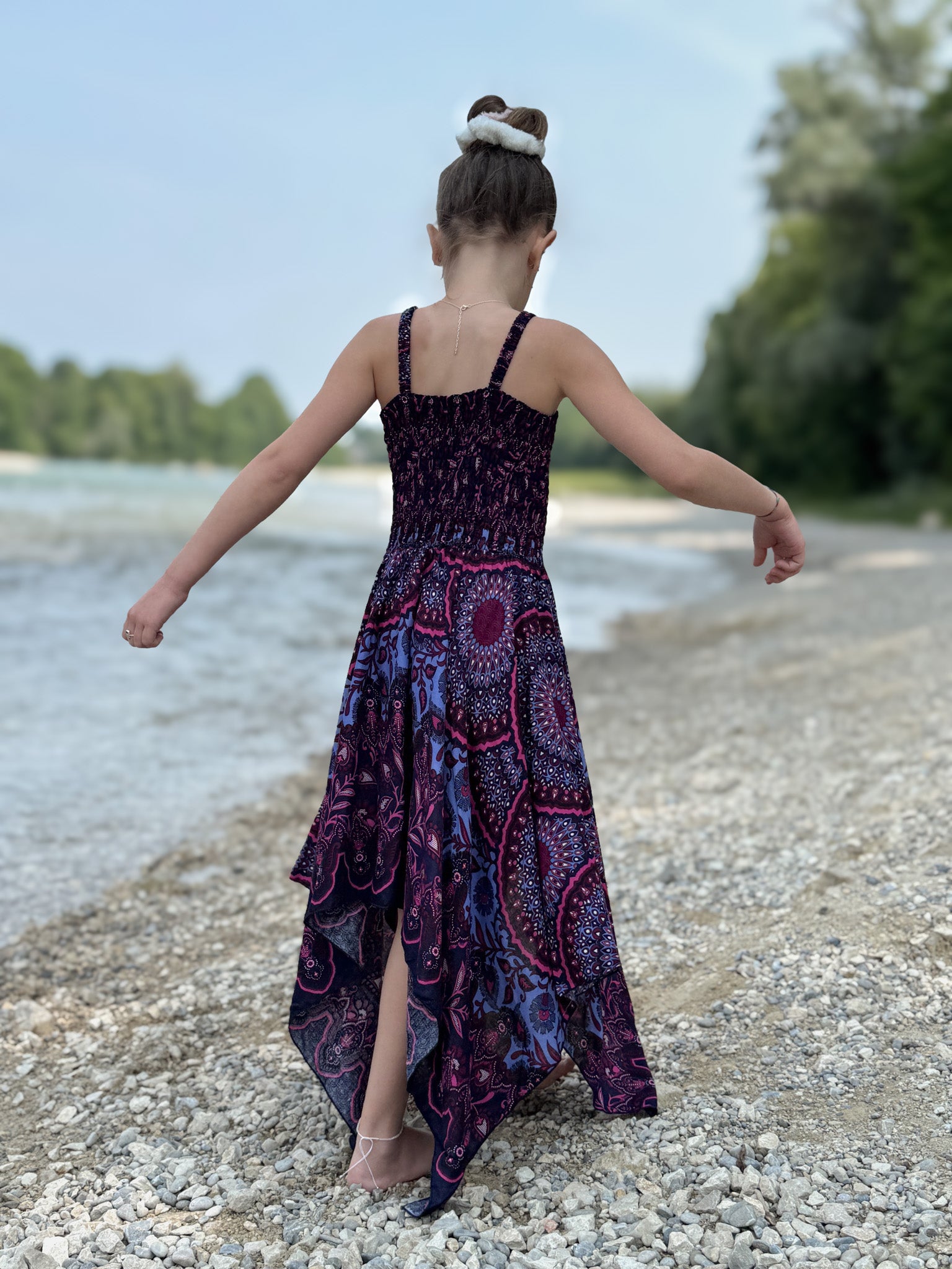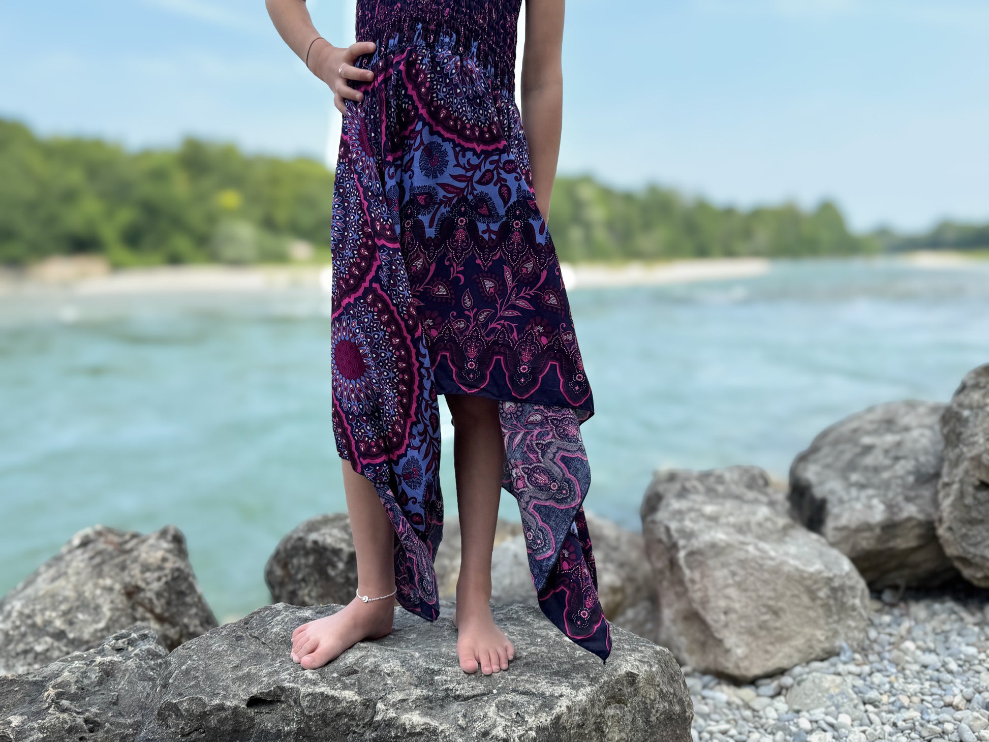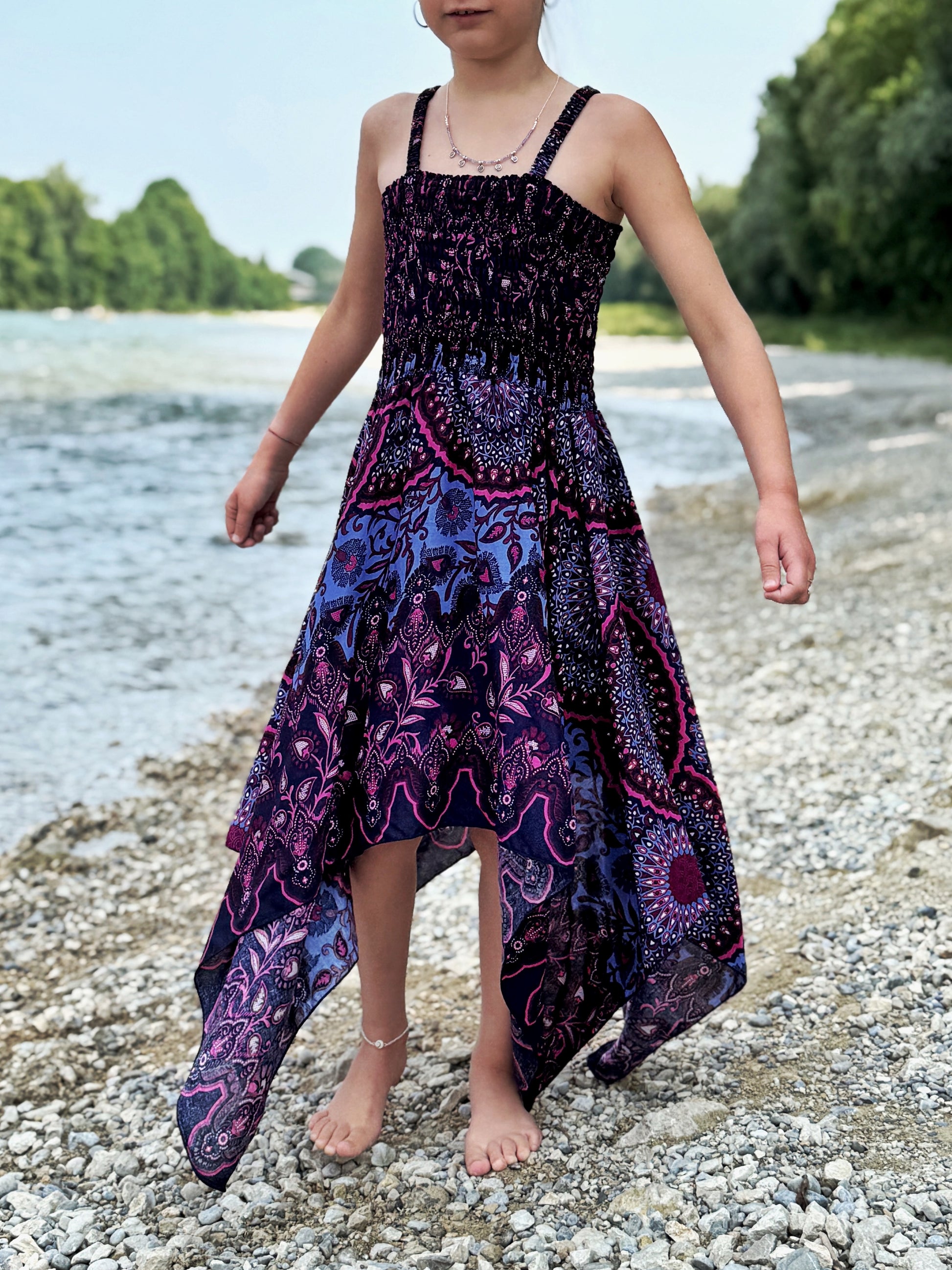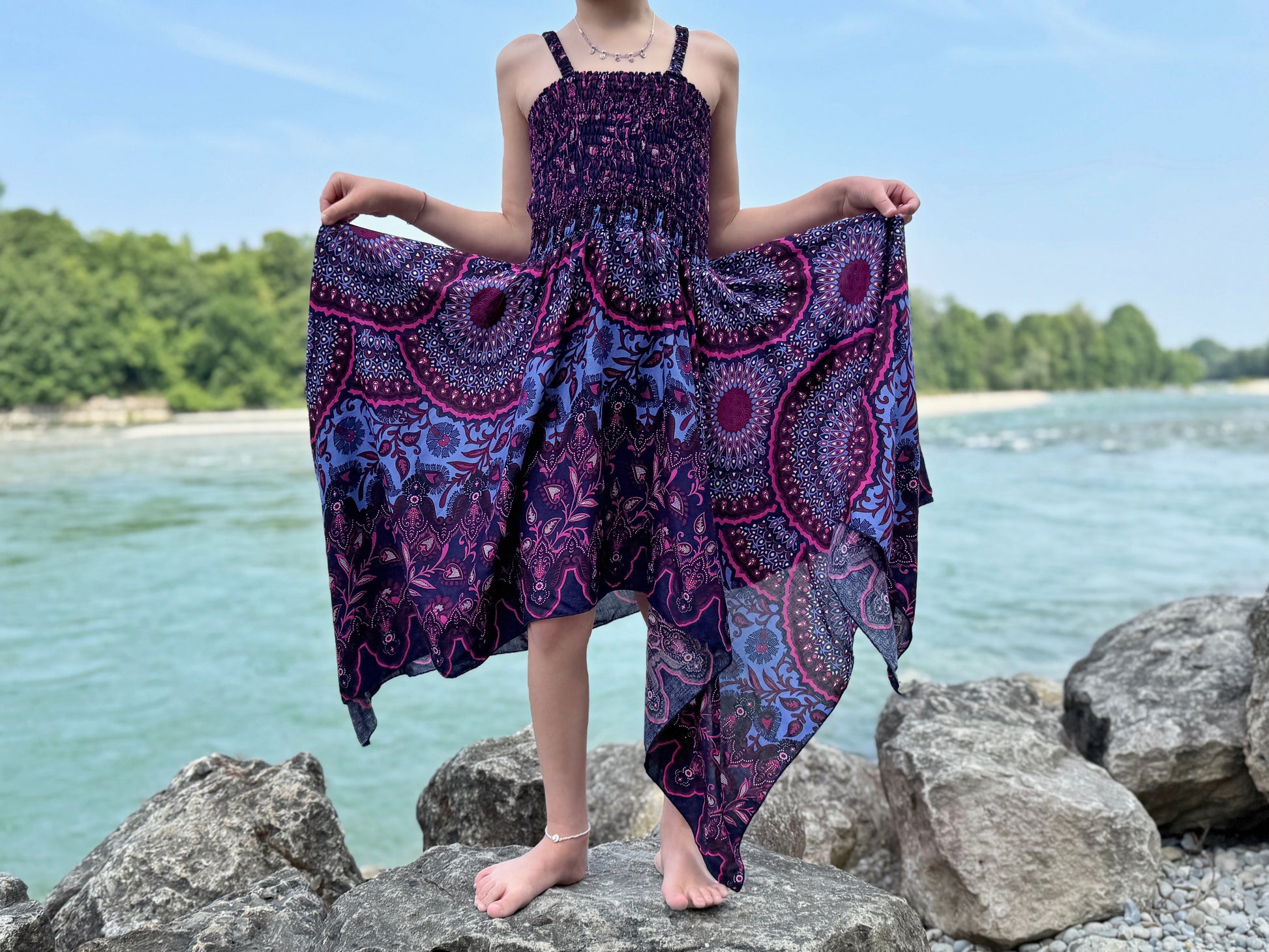 Ein farbenfrohes Boho-Kleid für kleine Abenteurerinnen – bequem, einzigartig und mitwachsend.