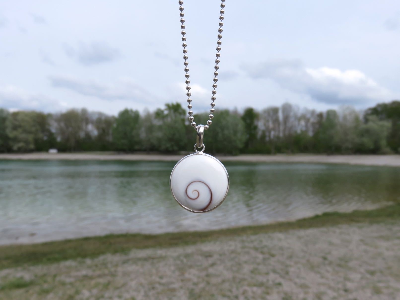 round operculum pendant made of silver
