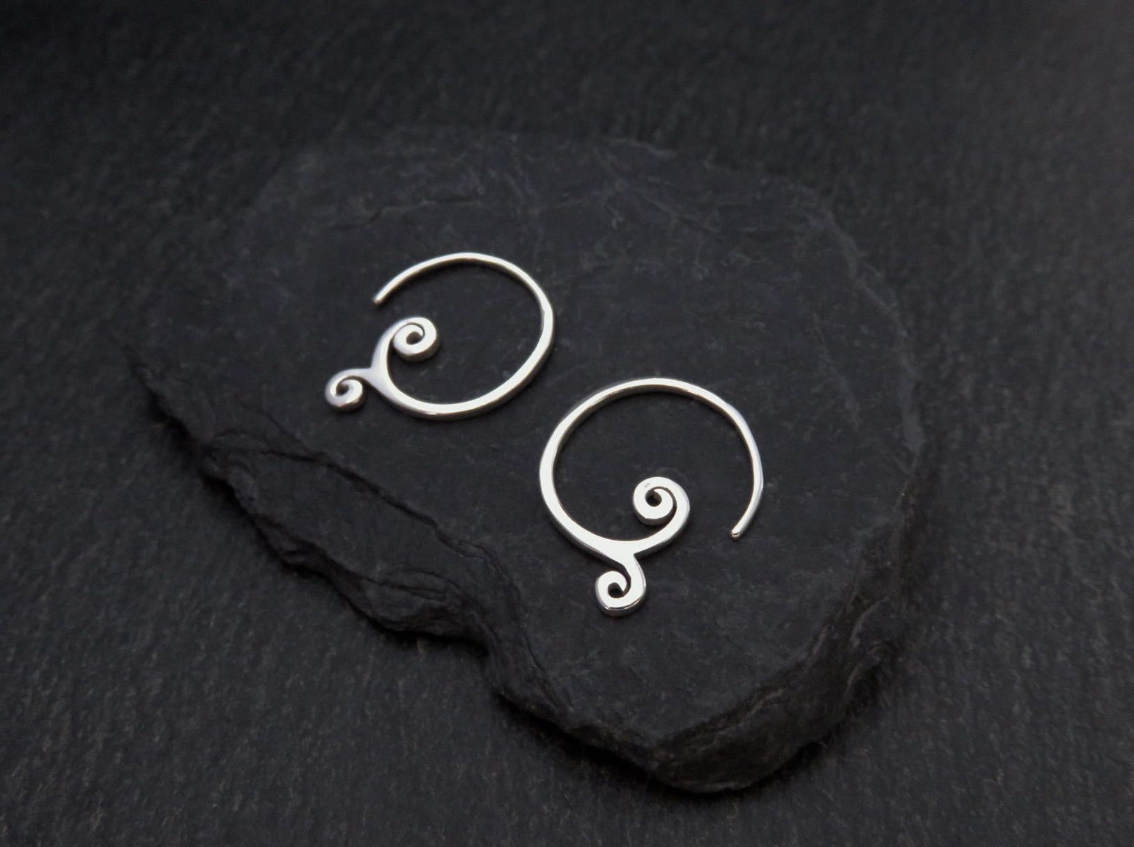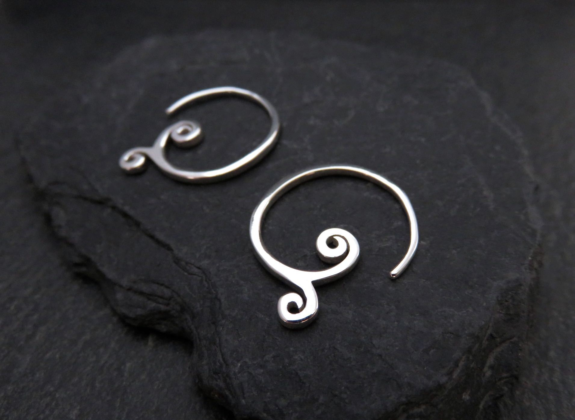 simple small earrings with spirals made of silver